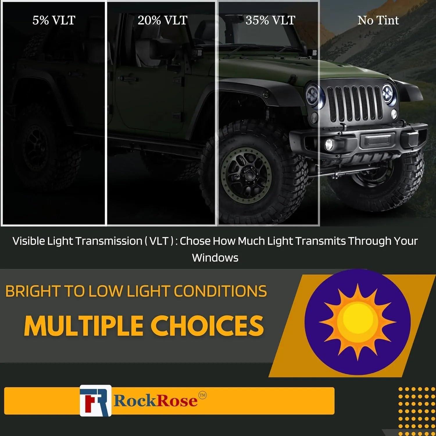 imageRockRose 5 Car Window Tint 36 in x 100FT 1PLY Carbon Charcoal Privacy Film Heat UV and IRR Block Tint for Cars or Home Adhesive Film Easy Shrink Plotter Friendly Pro Grade35 Percent
